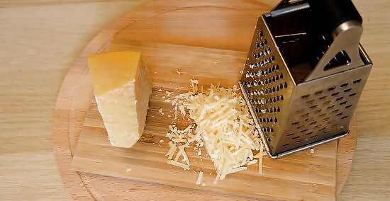 Keep your cheese medium to large sized. This will prevent you from scraping your fingers before you have the desired amount of shredded cheese.