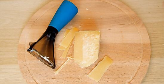 Shred cheese with a vegetable peeler. Though not as efficient or glamorous as using a cheese grater, a vegetable peeler will still get the job done. Hold a medium sized block of cheese over a regular sized plate. Rub the peeler against the cheese in a continuous forward motion. For higher quality slices, refrigerate the cheese first or opt for a hard type of cheese (such as Parmesan).