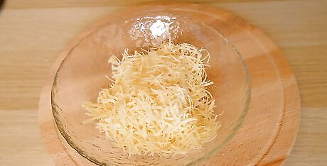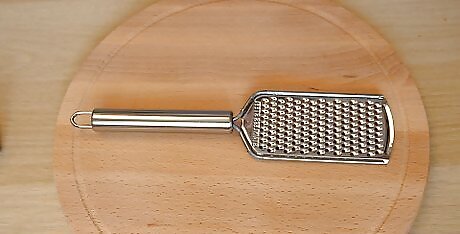 Grate cheese using a microplane cheese grater. A microplane cheese grater consists of a handle attached to a long, flat grate with small, sharp teeth. Although they are usually used for zesting lemons or grating garlic, they are perfectly serviceable when it comes to grating cheese. Because microplanes tend to produce smaller pieces of grated cheese, they are best used with hard cheeses such as Parmesan or Pecorino. Grating a soft cheese like mozzarella with a microplane would only give you a mushy mass instead of cleanly grated cheese.