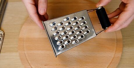 Let your box grate decide how you'll use it. For box graters without a handle, hold the cheese and grater over a large bowl. For graters with a handle, place the end of the grater on a cutting board.