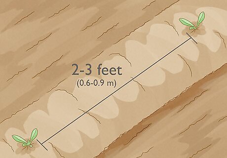 Make sure to give your seedlings enough space. Whether you grow your seedlings from seed, or purchase your seedlings at a nursery, you will have to give them enough space in your garden. Seedlings should be planted about 2 to 3 feet (0.6 to 0.9 m) apart so there is plenty of room for good air circulation around the plants after they reach their mature width. Increased air circulation reduces the likelihood of fungal diseases. If the seeds are sown directly in the garden, thin the seedlings to 2 to 3 feet (0.6 to 0.9 m) apart when they are a few inches tall.