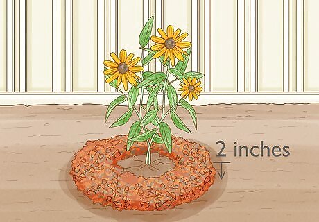 Mulch the area around your Black Eyed Susans. Spread a 2-inch depth of organic mulch over the soil around the plants to help retain moisture in the soil. You don’t need to give your plants fertilizer, as they grow well enough without it.