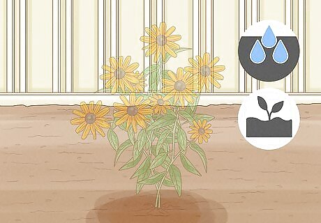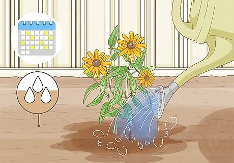 Water your plants when the soil becomes dry. Black eyed Susans are surprisingly drought-tolerant after they become established. For the first year, however, they should be watered when the top of the soil begins to dry. Water them only once or twice each week during dry spells from the second year on. Try to avoid getting the foliage wet, as this can cause mildew to form.