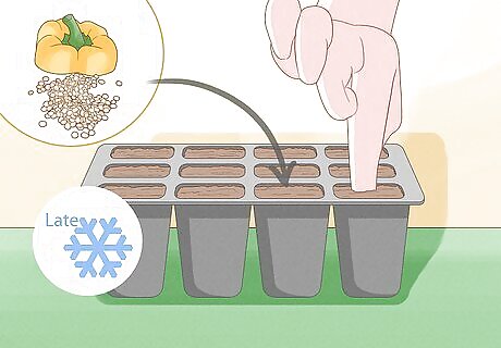 Plan to sow sweet pepper seeds indoors in late winter. Sweet pepper seeds take awhile to germinate, and they will not survive outside until the temperature warms up to 70 °F (21 °C). Give yourself eight to ten weeks to start the seeds before the weather warms to at least 70 degrees and all chance of frost has passed.