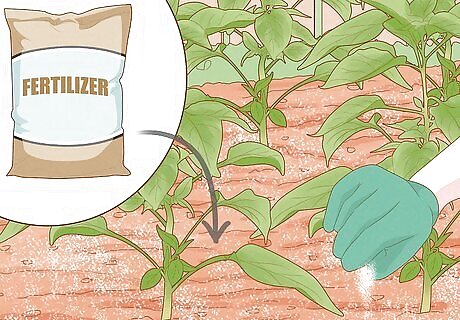 Fertilize the plants after they fruit. This will help the plants produce large, healthy peppers.