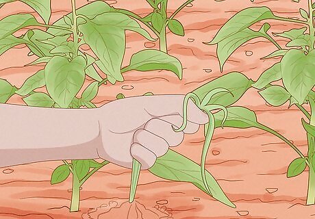 Weed the pepper plants often. Hoe around the plants to keep weeds away. Be careful and do not hoe too deeply, or you may cut into the roots of your pepper plants. You may also pull the weeds by hand. Be sure to discard the weeds in a separate area so they don't drop seeds and grow back.