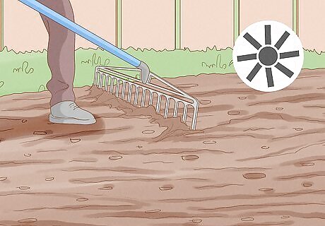 Prepare the soil in your garden a week prior to planting. Time it so that you work the soil right as the weather is warming up. It's best to work the soil after all chance of frost has passed, and the temperature is steadily climbing toward an average of 70 degrees. Choose a spot in full sun and loosen the soil with a garden rake and add organic compost. Make sure the soil drains well by soaking it with water. If the water puddles in the soil, you'll need to add extra compost and organic material. If the water soaks in immediately, it drains well enough for planting. If you are planting in a garden pot, it should be at least 8 inches (20.3 cm) diameter to accommodate the plants' growth.