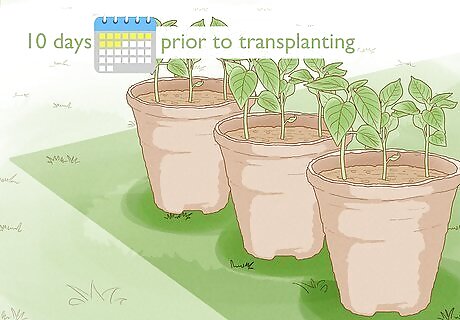 Harden off the seedlings ten days before planting them outside. Do this by placing the seedlings in a sheltered outdoor space, like a garden shed or covered outdoor area. Make sure they still get plenty of light. Hardening off the seedlings will help them get used to the outdoor climate before they're planted making the transition less jarring.