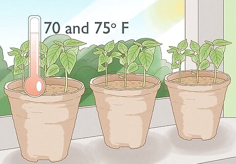 Keep the seedlings warm and moist. The seedlings need to be kept at a temperature between 70 and 75 degrees Fahrenheit to germinate properly. Set them in direct sunlight in a warm room, and sprinkle water on the soil to moisten it. Make sure the soil never dries out. It is important that these seedlings get enough light to grow. You can always add a fluorescent light, if needed. Be careful when watering that you do not disturb the soil in the cups. A light mist is a good way to water.