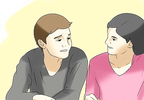 Say that you know some calming techniques, and ask if they'd like to do them together. If they say yes, the following techniques can help them relax or reconnect with reality. Anxiety, Anger, and General Distress: Ask them to take deep breaths from their diaphragm (belly). Hold it for a count of three, and exhale for a count of three. Repeat until they look more relaxed. Persistent Worries and Negative Thoughts: Help them focus on something else by encouraging them to use imagery. Ask them to imagine a favorite place they go to. Then, ask details about the imagery. "What do you see when you stand on the dock?" "What sounds can you hear?" Depression/Suicidal Thoughts: Ask them to name their favorite people in the world. Then, one by one, ask them to list one of each: (1) two good things about that person, (2) two good memories involving that person, (3) two reasons they like that person. This will take off the edge by reminding them of the good things in life. Also try asking about locations or hobbies (nothing stressful). Psychosis and Hallucinations: Use "grounding" techniques to help the person reconnect with reality. Ask them questions regarding their surroundings to engage their five senses. Lists of grounding techniques exist online to help you.