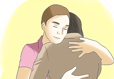 Comfort the person. Psychiatric emergencies might be frightening to onlookers, but they feel far worse to the person experiencing them. The person may feel overwhelmed, terrified, frustrated that they can't control their emotions, and ashamed of losing control in front of other people. Let the person know that even if you're not experiencing the same thing they are, that their feelings are valid, and that you can understand why they might be feeling that way. Do not invalidate the person's feelings by telling them to just "Get over it" or "Be strong." Mental illnesses such as anxiety and depression often magnify feelings of shame and guilt. If there is a glass of water nearby, offer it to them. Ask before touching them (even if you know them well). If they feel anxious or are experiencing sensory overload, their brain may interpret it as an attack. Ask "Do you want a hug?" and wait for their response. Speak calmly and compassionately to them. Talk to them the same way you'd talk to an unhappy friend. This will help reassure them that you are a "safe" person, and that they can calm down.