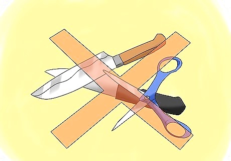 If they're at home, remove any dangerous objects from the room. This includes scissors, knives, pill bottles, guns, razors, and other sharp objects. Even if someone will be staying with them, it's possible that they could reach for it when the other person turns their back or takes a bathroom break.