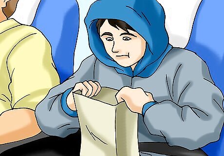 Keep the motion sickness bag handy. As soon as you sit down, find the motion sickness bag and move it somewhere you can access easily in case of emergency. Practice opening it so you’ll know how to do it quickly just in case.