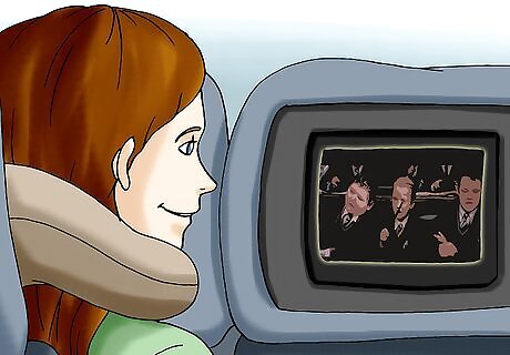 Keep distracted with onboard entertainment. Make sure you have lots of entertainment options to keep yourself distracted during your flight. If your flight offers a media center or an in-flight movie, take advantage of it, even if you’ve already seen the movie! If you don’t know if your flight has in-flight media, bring your own. A book, crossword puzzle, or a movie on a portable player will help keep you distracted and relaxed.