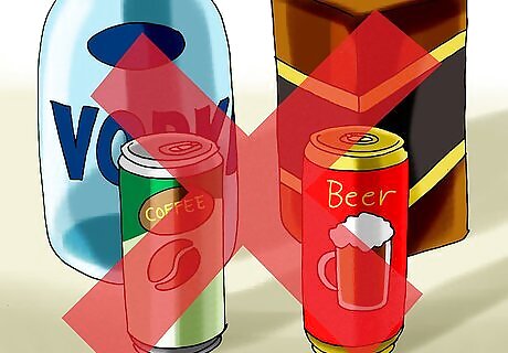 Avoid caffeine and alcohol. Caffeine and alcohol can both aggravate nausea, so try to avoid them on your flight. If you do have a coffee or a beer, sip them slowly to avoid upsetting your stomach.