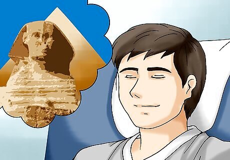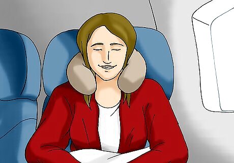 Get as comfortable as possible. Airplane seats can be small and cramped, but try to get as comfortable as you can. Wear loose, comfortable clothes, ask for pillows and blankets if you need them, and adjust the seat back to get into a state of relaxation.