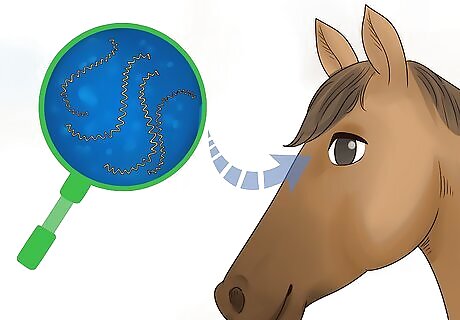 Get your horse checked by a vet immediately. As soon as you notice symptoms that could be related to moon blindness, call your equine vet. Let them know what symptoms you have noticed, and if any of them are recurring. All eye problems should be checked by a vet. Moon blindness can get worse very suddenly, so do not wait to call a vet. Your vet will be able to check for potential causes of moon blindness. Some, such as parasitic infection, may be chronic, while others, such a trauma, may cause acute moon blindness.
