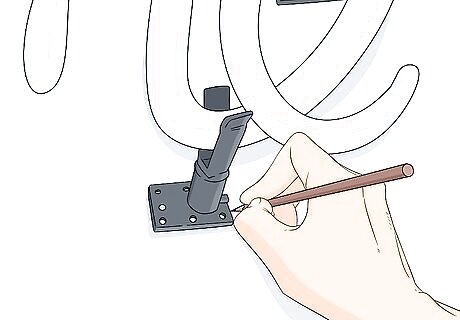 Poke a pencil through the clip holes to mark the screw locations. Keep the light pressed against the wall. Take a pencil and poke it through each hole on the clips to make a mark on the wall. This indicates where the screws will go. This is much easier if you work with a partner. They can hold the lights up while you mark the holes. If the lights have a backboard, then you'll probably mark holes through the corners of the board. Hold the sign up where you want it and poke the pencil through the holes along the backboard to mark the screw locations. You could also use a marker for a more noticeable mark. You’ll be drilling through the dots anyway, so don’t worry about leaving a mark on the wall.