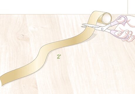 Cut a 2 ft (0.61 m) long strip of ribbon. Use a pair of scissors to snip through the ribbon you purchased. The length of the ribbon depends on how low you’d like the wreath to hang on the mirror. If you’re hanging the wreath on a tall mirror and would like it to be centered, you might need as much as 3 feet (0.91 m) of ribbon. With the extra ribbon, you could hang other wreaths over additional mirrors in your home!