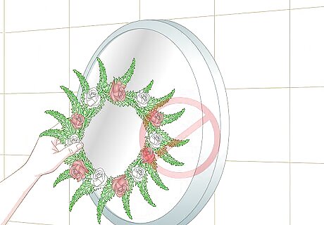Avoid hanging a wreath over a mirror that’s mostly practical. You want the wreath to provide attractive seasonal decoration, not to get in the way of your daily routine. If you have, for example, a tall mirror in your bedroom that you use to inspect your outfit before heading out the door to work, or a small mirror in your bathroom that you use to shave or apply makeup, don’t hang a wreath on these mirrors. In short, if it’s important that you’re able to see your face or body in a mirror, don’t put a wreath over it.