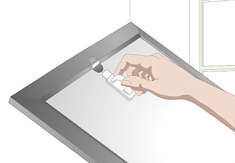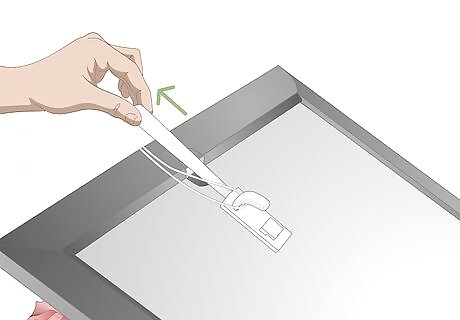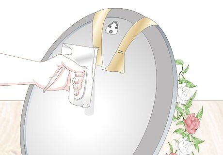 Press a pushpin into the drywall above the mirror. Not all mirrors can be removed from the wall. If you’d like to hang a wreath from a permanently mounted mirror, just stick a push pin into the wall about ⁄2 inch (1.3 cm) above the mirror. This works best if your wall is made from a relatively soft material like drywall. Hanging a wreath from a push pin is also a good option if your mirror is removable but sticking an adhesive hook on the back would make it stand out awkwardly far from the wall behind it. If the pushpin stands out against your wall, dip the head of the pin into a small bottle of acrylic paint the same color as your wall. Let the paint dry for about 20 minutes before touching the pushpin.
