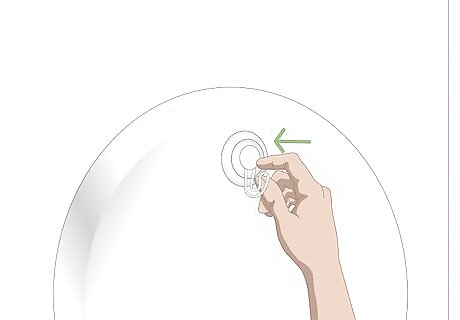 Stick a suction cup on the top of the mirror if you can't put a pushpin in the wall. If your walls are made of brick, wood, or another substance that you won’t be able to get a push pin into, using a suction cup is the best way to hang a wreath. Run the back of the suction cup under a trickle of water to dampen it. You can also try breathing on the back of the cup to fog it. Then stick it to the mirror about 1 inch (2.5 cm) down from the top. Purchase suction cups at any drugstore or large supermarket. Some pharmacies also sell suction cups.