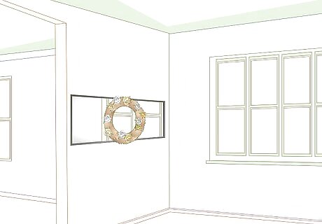 Hang the wreath over a mirror that’s intended for decoration. Many home decorators like to hang up mirrors in order to increase the amount of light in a room and to make the space appear larger than it really is. Since they’re generally not intended for practical use, these mirrors are an ideal option to hang a wreath on. Even with a wreath over them, they’ll still reflect light into the room! If you have decorative mirrors in your home, they’re most likely located in your living room or family room.
