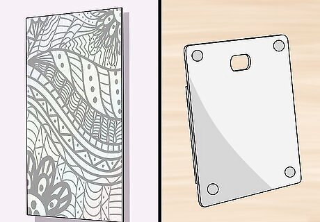 Purchase stand-out mounts to make your print a statement piece. Stand-outs are ⁄4 inch (19 mm) thick, edge-banded foam board. They are mounting devices that make your print ready to hang. Stand-outs come in two sizes, either Reveal or Flush Cut. Both options come with metal hanging brackets and can be used with all sized prints. Reveal style stand-outs have rounded corners and are ⁄8 inch (3.2 mm) smaller than your print. Use if your print has rounded corners. Flush cut stand-outs have sharp, square corners. You can select black edge banding for all sizes. White, silver, or maple edge banding is available for certain sizes. Purchase these stand-outs from a craft store, home supply store, or camera supply store.