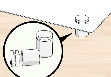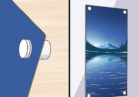 Go with stainless steel posts to give your prints a modern look. Stainless steel posts are ⁄4 in (19 mm) in diameter and hold your aluminum print ⁄4 in (19 mm) off the wall. Attach the posts through 4 holes in the 4 corners of the metal print. To attach your print to the wall, screw the barrels of the posts to the walls, and then attach the threaded caps into the stainless steel barrels. You will have to select this mounting option when ordering your metal print so that your print will come with 4 holes pre-drilled for easy assembly. Posts are available for mostly all sizing options, though they work best for sizes between 8 in × 8 in (200 mm × 200 mm) and 30 in × 40 in (760 mm × 1,020 mm).