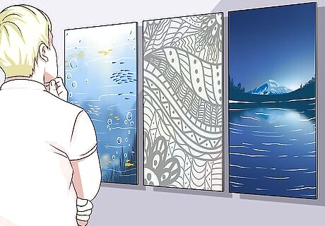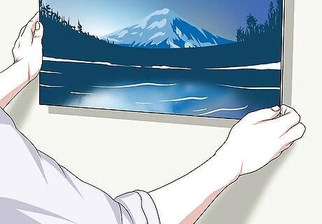 Use a stud finder to locate a stud. Your aluminum print will weigh more than a canvas or paper print, so it is important to make sure your walls can support the weight. Slide the stud finder across your wall horizontally, and look for the blinking light. When the light flashes, the stud finder has located a stud. Hang your print from a stud in a flattering location. Position it a few inches above furniture and a few inches from the top of the wall. This will make your print look centered with your furniture.