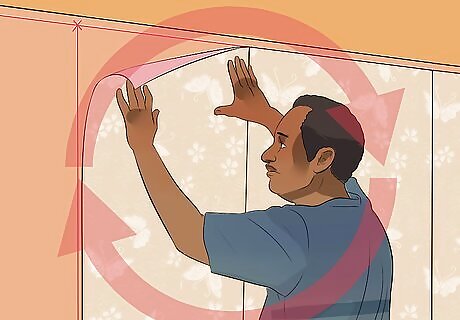 Continue adding strips. Use the aforementioned steps to continue adding more strips of wallpaper. As you add each strip, take time to line up the pattern and overlap when necessary. Well hung wallpaper will lack any visible seams and discrepancies in the pattern.