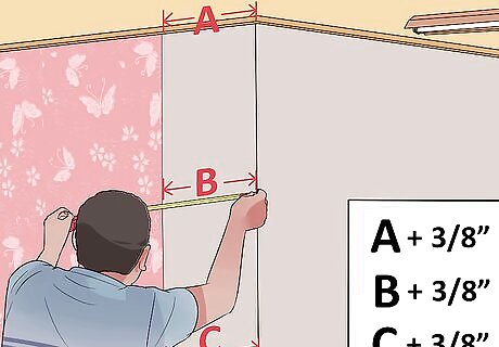 Make your measurements. Take your ruler or tape measure and measure the exact distance from your right edge of the last piece on the wall to the corner. Measure three times: at the top, middle and bottom. Take note of the longest measurement. If the three numbers are the same or very close, your corner is relatively plumb and you have done a good job keeping your wallpaper plumb as well. Take the longest of the three corner measures and add about 3/8 of an inch. This will be the length you measure your wallpaper to. Once you get good, you can consider using 1/4 of an inch in the cutting process instead of 3/8 of an inch.