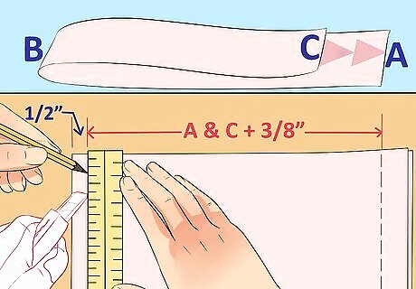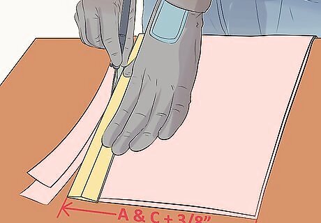 Finish cutting. Repeat your ⁄2 inch (1.3 cm) cut at the other end of the folded paper using the same "length + 3/8" distance. Now you should have a small cut at both ends. Hold the ruler down reasonably firmly so that it does not slip as you cut. Take a new razor blade and make a lengthwise cut in order to cut the wallpaper into two sections. You now have a "to the corner" section and an "after the corner" section.