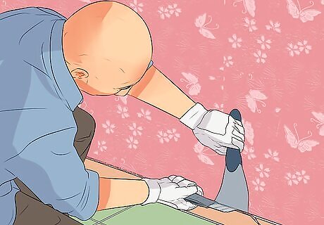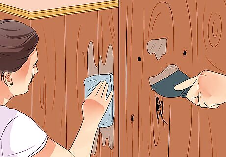 Prepare the walls. Wallpaper has a difficult time sticking to dirty or greasy walls, so wipe down yours with a damp cloth. Patch any holes in the walls, and give time for both your patches and water on the walls to dry. If you are wallpapering over pre-painted walls, add a coat of primer first. If your walls have wallpaper already on them, take the time to remove it before adding your new layer of paper. This will guarantee a longer lasting application.