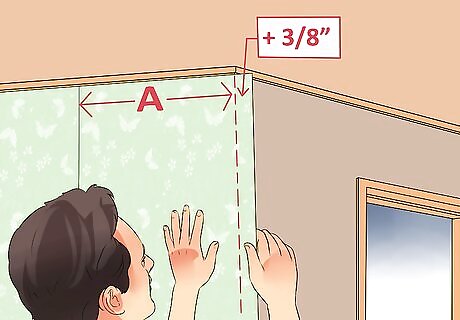 Hang the "to the corner" section. This piece should overlap the corner at least ⁄8 inch (1.0 cm), and if your walls are crooked it may overlap the corner by more at the top middle or bottom. The key is to have overlap "top to bottom" at the corner, but too much overlap can be noticeable. If the overlap is greater than about 3/8 of an inch, take a fresh razor blade and making a freehand vertical cut, carefully cut away any overlap that is greater than 3/8 of an inch.