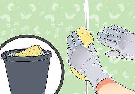 Wipe off messy adhesive. It’s guaranteed that you have some adhesive on the surface of your freshly hung paper. Using clean water and sponge, wipe down the wall covering – top to bottom. Take your time, wallpaper adhesive can be hard to see. Don’t forget to clean the glue off the ceiling joint and baseboard. Avoid using terry cloth rags or towels. They can be too abrasive and can ruin the finish of your wall covering. Smooth out any bubbles that might have formed in the wallpaper with your sponge. The strip of paper should be completely smooth when you're finished.