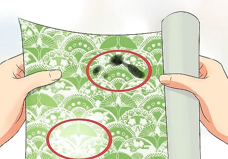Check for defects. Inspect the entire bolt for defects in the printing process. These are usually streaks of color, blobs of ink, or color voids. One small defect in an entire roll can usually be cut out and worked around. If there is enough defect in the paper that you may lose an 8 foot (2.4 m) strip then you should return the wall covering for a refund.