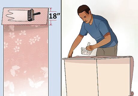 Find the pattern repeat. Find an object near the edge of the paper, measure down the paper until you get to the exact same object. This distance is called the pattern repeat. Keep this measurement in mind, as you will use it later to line up strips of the paper.