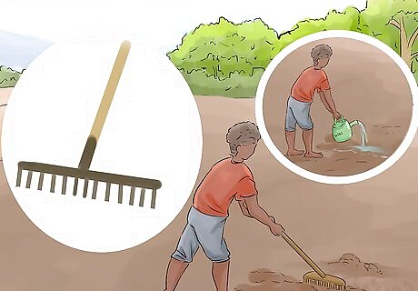 Uncover and rake the earth. When you are ready to sow the heartsease seeds, remove the covering. Rake the soil to even out the surface and remove weeds and debris. Water the soil so that its moist before you sow the seeds. For best results, sow heartsease seeds in the springtime around April.