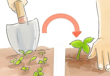Replant the seedlings. After approximately 16 days, or when seedlings have grown to several inches tall, replant them in your flower bed. Using a spade, gently dig up the seedlings. Replant them approximately 6 inches apart, preferably in an area in sun or partial shade. You may also purchase heartsease seedlings from local nurseries or gardening stores to plant. Heartsease seedlings can also be planted in decorative planters or pots. You can also start your heartsease indoors in pots and then move them outside once they're around 4 inches (10 cm) tall.