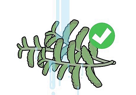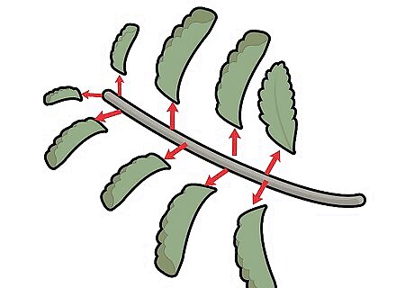 Pluck your dried, harvested stems. If you haven't already removed the leaves from the stems, do this now. You can pluck each dried leaf from its stem individually, or run your hand along the stem, stripping the leaves as you go.