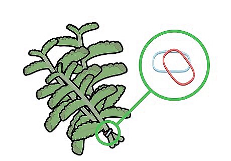 Bundle your harvested stems together for drying. Include about 2 or 3 stems in each bundle to allow better air circulation. Tie each bundle together at the base (like a bouquet of flowers) using an elastic band.