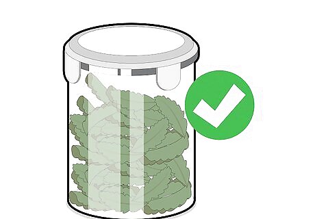 Store whole leaves in air-tight bags or containers. Dried leaves can be kept this way for up to a year. Ensure the leaves are completely dry and no air can enter the container or bag. Store whole dried stevia leaves in a cool dark place, such as in a cupboard.