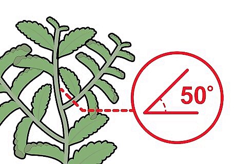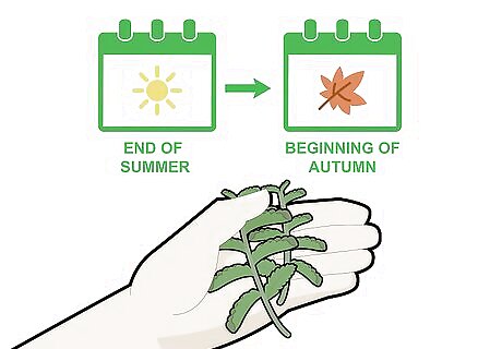 Make pruning cuts at a 45-degree angle. Snip the stems off where they fork off from the main trunk of the plant. If you're not keeping your plants over winter, you can also harvest stems by simply pulling or snapping them off if you wish, since the plants will die off anyway.