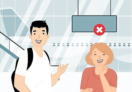 Speak nicely to others. Sometimes, you might be spoken to spontaneously by other patrons and it's important to listen and answer to the best of your ability. While answering and speaking to people, you don't need to be to thick-skinned and snap back a response. It's highly likely that you will never see this individual ever again. If asked where certain places are or what the time is, help the person reach the answer they seek and then be on your way. Doing this will show that you are welcoming and approachable. Find the comfortable median between being a pushover and conceited. Finding the middle digit will show that you are a well rounded person. You won't be used, but you won't be cruel.