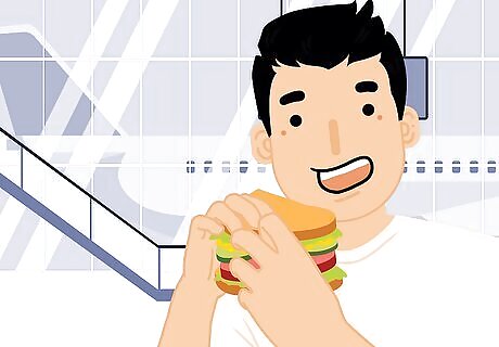 Eat the right things. Avoid consuming foods that may result in unforeseen bowel movements. You will most likely feel terribly uncomfortable while you wait in the terminal or during the flight; and in some cases, you might make the passengers in close proximity feel that way too. Rather than drink copious amounts of water prior to the flight, take regular small sips to ration out the likelihood of you needing to use the lavatory, depending on the duration of your flight.