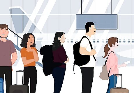 Have all documents ready. It's important while waiting in line to have your Identification documents and other relevant papers ready, as this will save the time of ruffling around in your luggage and thus taking up other peoples time in line. You will be seen as primed if you have everything you need ready to go.