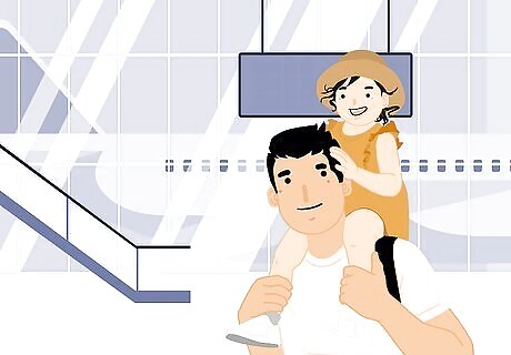 Control your child (if you have one). One of the hardest things for a parent is to teach a child is how to behave in public spaces. However, it isn't an impossible task, and it's important to do so prior to visiting an airport, let alone a plane! Children are usually the main fault when it comes to proper composure and etiquette in an airport. Strange environments may be stressful or exciting for children, however, as a parent, it is vastly important to insure that your child is where you can see them at all times. Inform your child if they are old enough about everything you are doing to keep them up to date with the trip. It saves the constant questioning and interrupting as to where and what they are doing next. Remember to reward the child for well-esteemed behavior and discipline them for noncooperation. You should never discipline your child in public places, let alone an airport. It does put others around you on edge, humiliate the child, and it can also result in them having adverse social ramifications later in life. For example, you can promise your child that when you get to the hotel or accommodation, they will be rewarded a treat if their behavior is constantly compliant throughout the ordeal. If they were not, let them know they won't be getting a treat and instead losing a privilege (For example, no iPad or iPod for one day of the vacation). If you have an infant, insure you escape to quiet areas of an airport to settle the child down. Most airports have family rooms that you can resort to, rather than interrupting people around you with screaming and crying.
