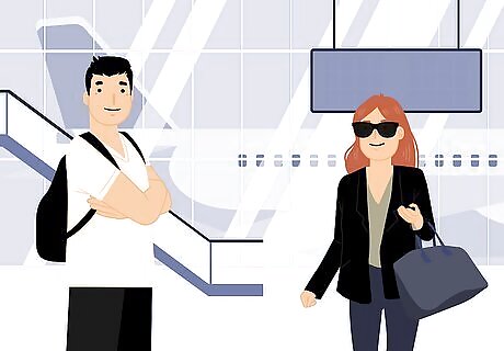Be humble to celebrities. Sometimes, especially in international airports, you may get the occasional superstar that steals the attention of almost everyone. If this happens while you’re at the airport, it’s important to be calm and not act ridiculously by chasing them, screaming, or carrying on. If you do have the opportunity to see a personage in the flesh at the airport, it's important to treat them with respect. If they are someone you admire, it's fine to ask for a quick signature; but comprehend that their schedule is far more rigid than yours, and in most cases you may be on holidays but they are actually at work. They may have flown for many hours, so they are probably tired and maybe a little not in the mood for their number one fan. Keep your distance when getting close to the entourage. It's more than likely that the paparazzi will be more focused on getting their million dollar snap than avoiding a collision with you. Hold yourself from running at the celebrity. Generally, their body guards are tarnished for their unsympathetic and in some cases, brutal defense techniques.