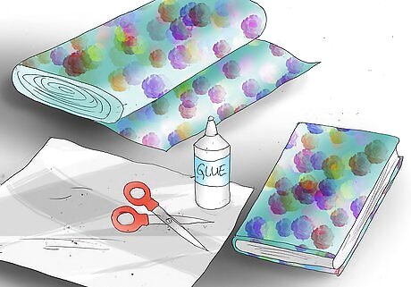 Cover your books with fabric. Go to a craft or fabric store. Find material that matches your fashion style. Protect your schoolbooks with something a little more pleasing to the eye than a cover made out of grocery bags or newspapers! You’ll be using glue for this, so if the book belongs to the school, cover it with paper first. Spread out a flat piece of paper and set the opened book on top of it. On the paper, trace a line along the top and bottom of the book’s covers. Remove the book and then fold the paper along these lines to crease it. Place the opened book back in its original position and trace the left and right sides. Remove the book and fold along these lines. Slip the front cover into the pocket you’ve just created on the lefthand side, and then do the same with the back cover on your right. Smooth the paper so there’s no wrinkles. Spread out your fabric. Set the opened book on top of it as though you’re about to read it. Trace the outline. On the left and right hand side, draw a new line to give yourself an extra inch to fold inside the covers later on (if the book belongs to you, you can do the same along the top and bottom). Remove the book and cut along the marked lines. Brush the outside of the book’s covers and spine with glue. Open the book and set it down with the covers facing up. Place the fabric over the covers and spine so the original outline lines up with the book’s edges. Smooth the fabric out so there’s no wrinkles. Brush more glue around the edges of the inside covers (if the book belongs to the school, only brush the paper). Fold the extra fabric over the inside of each cover and glue it in place. If the book belongs to you, cut slits in the extra fabric along the top and bottom, at each corner of the spine, before folding the fabric over. Once the fabric is glued along the top and bottom, trim all but the tiniest bit of extra fabric along the spine. Dab the edge of the spine with glue and fold the last bit of fabric over that to finish.